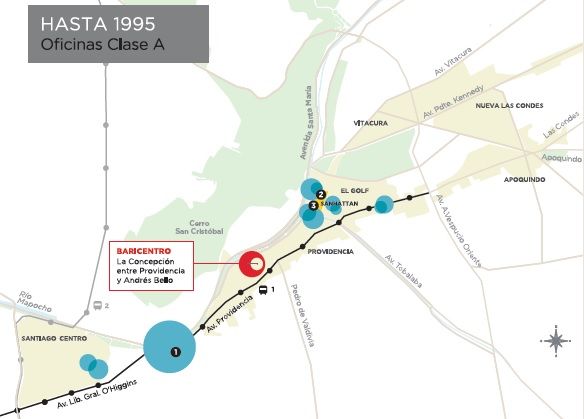 El mercado de oficinas de Santiago experimentó, en los últimos veinte años, una expansión sin precedentes que modificó y continúa cambiando la fisonomía de la ciudad. En este contexto, analizamos los factores que contribuyeron a ese crecimiento, aplicando el concepto de baricentro, que proviene de la geometría. Tomamos la latitud y la longitud de cada edificio Clase A y ponderamos los datos por la superficie arrendable.