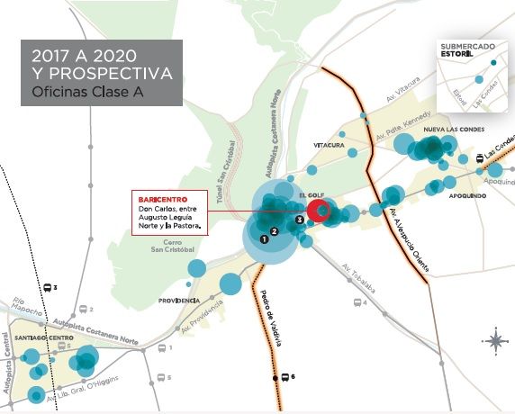 En los próximos años, sin embargo, se proyecta una desaceleración del mercado de oficinas, que volvería a crecer a un ritmo parecido al que tuvo hasta 2011, con unos 324.398 m2 de superficie de nuevos edificios de aquí a 2020. En esta fecha, la superficie total llegaría a 1.909.910 m2, con Providencia y El Golf como los submercados con más crecimiento.