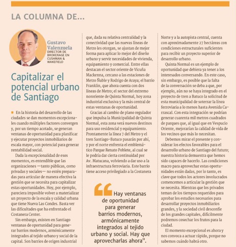 Debemos mirar el presente y considerar los efectos favorables para el desarrollo urbano de Santiago del futuro; nuestra historia demuestra que hemos sido capaces de hacerlo. Las condiciones macro para aprovechar estas oportunidades están dadas, por lo tanto, es clave que todos los actores