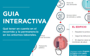 Para garantizar la seguridad de los trabajadores en los entornos laborales y en el trayecto hacia los lugares de trabajo, desarrollamos esta guía interactiva para que puedas conocer de forma fácil las principales recomendaciones para cuidarnos entre todos.