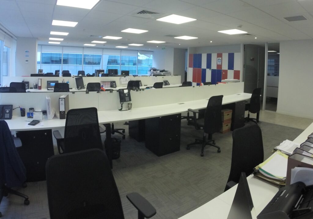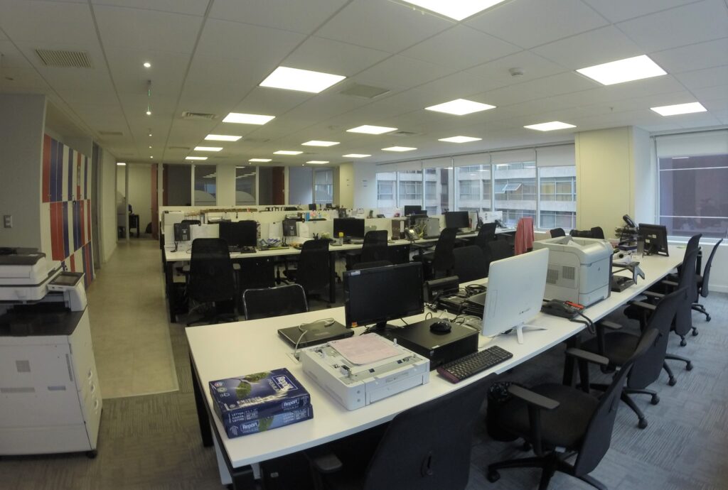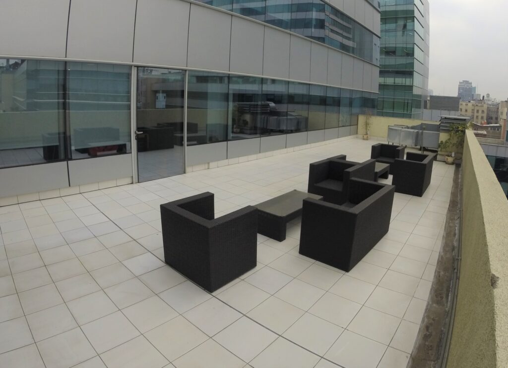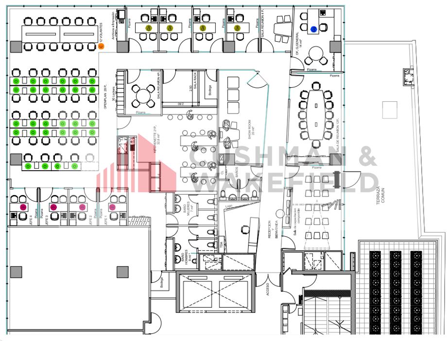 Oficina en arriendo de 445 m2 + 200 m2 de terraza, mitad de piso. Edificio clase A con certificación LEED, complejo Santiago Downtown. Acceso inmediato a estación de Metro Moneda y rodeado de todo tipo de servicios: restaurantes, supermercados, bancos, notarías, farmacias, entre otros. Oficina habilitada con recepción, salas de reuniones, planta libre con 41 puestos de trabajo, 11 privados, sala de servidores, showroom, 7 baños, archiveros, lockers, estación de fotocopias y gran kitchenette. Sistema de detección y extinción de incendios, cámaras de seguridad, climatización VRV-Fan Coil y tablero eléctrico independiente. Mobiliario disponible para ser comprado (por separado o incluido en canon de arriendo). Gastos comunes mensuales aprox: 0,09 UF/m2. Estacionamientos a 3,5 UF por unidad. Bodegas a 0,35 UF/m2. Canon de arriendo mensual: Oficina: 0,4 UF/m2 , Terraza: 0,2 UF/ m2. Valores + IVA. Disponibilidad inmediata. + 56 978 625 686